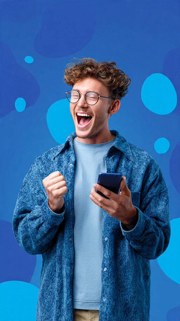Freeposterdesigns Blog Happy Man Using Smartphone for Online Communication and Digital Lifestyle