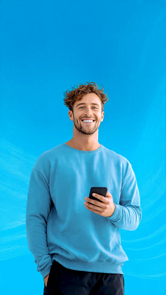 A smiling man using a mobile phone symbolizing modern technology, digital communication, and everyday lifestyle in a connected world.